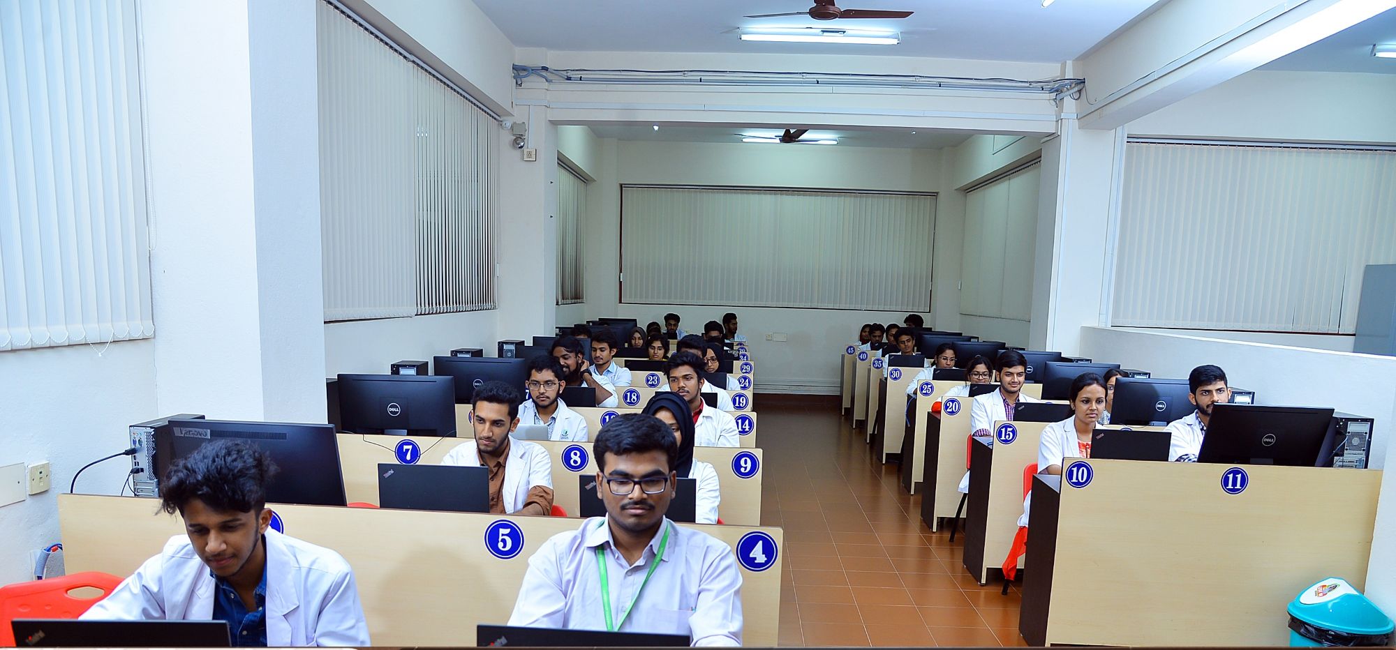 The E-Learning Centre was established in 2011 and is located on the main floor of the Central Library. The facility provides seating for 70 users, with 60 computer systems installed, and is equipped with essential digital and audio-visual equipment. High-speed internet connectivity, both wired and Wi-Fi, is available 24×7. This area is exclusively used for the Virtual Pharmacology Lab, training sessions, classes, exams, workshops, seminars, and other academic activities.